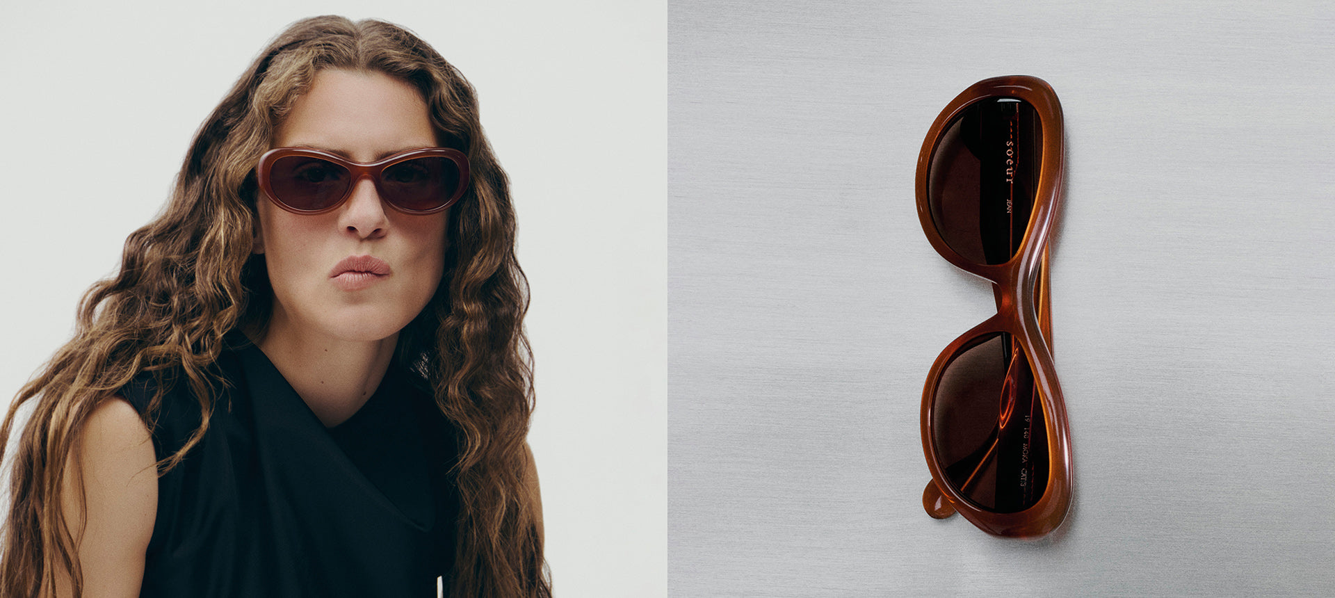Made in Italy, the glasses meld materials – acetate and metal – with the Soeur colour identity: deep brown, mineral taupe, dense mocha, luminous anthracite and intense black. The attention to detail continues with a custom-designed case for each pair, accompanied by a cotton pouch and a branded care cloth.