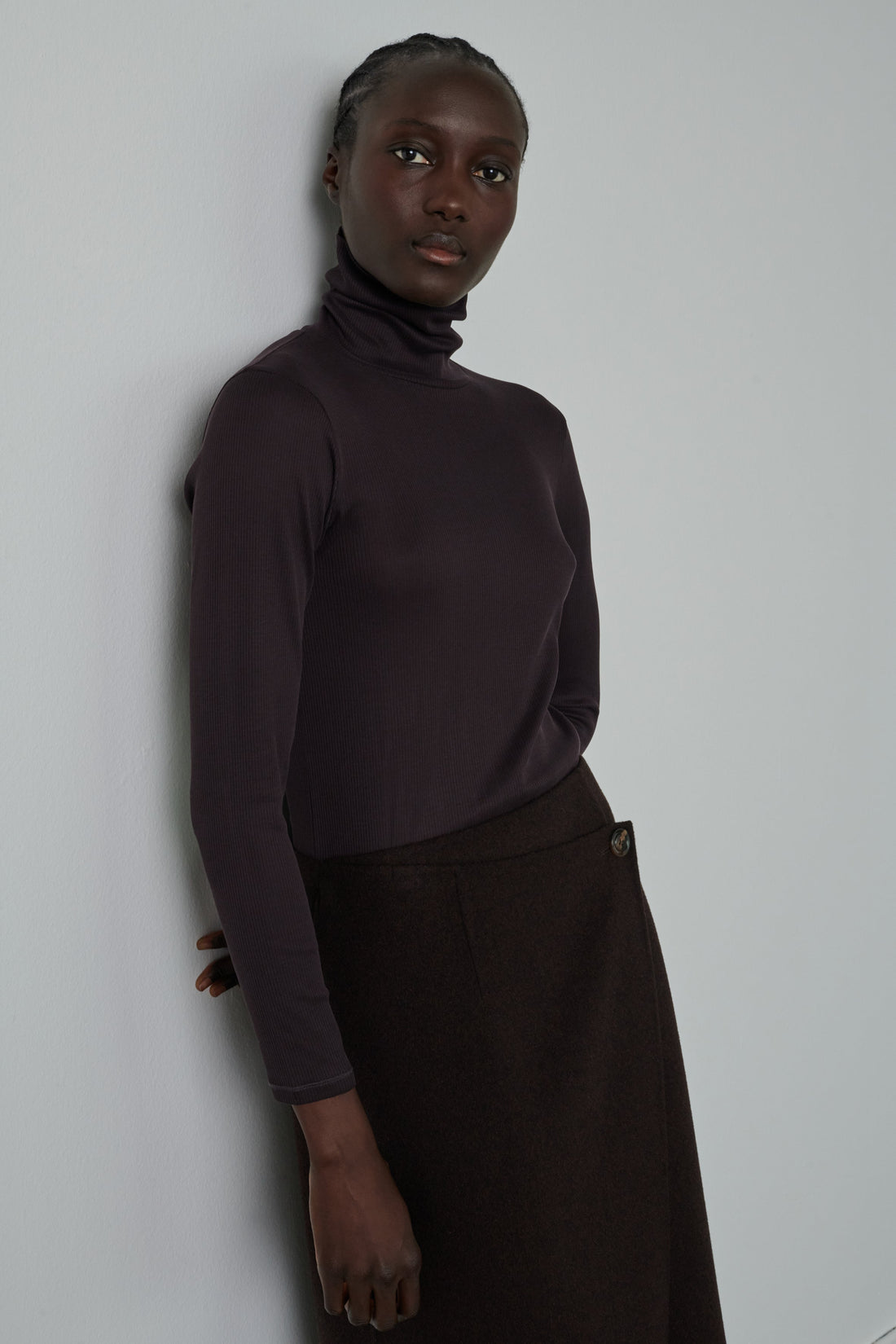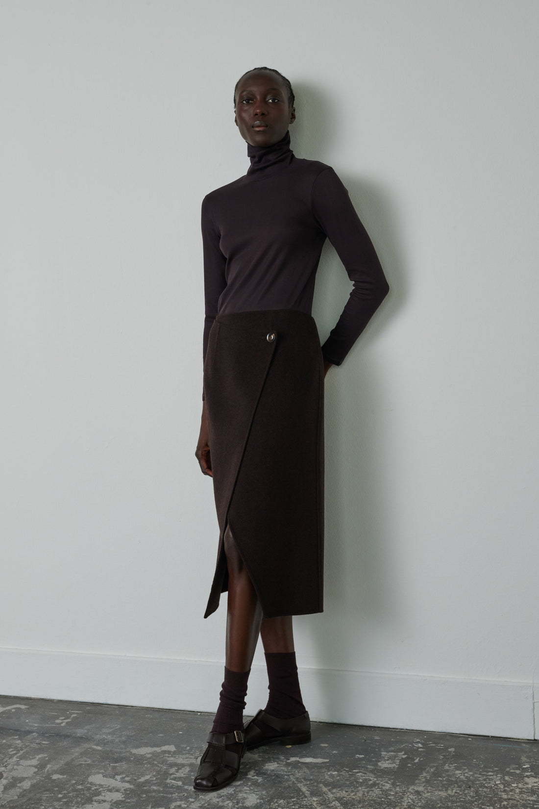 Asymmetrical double-sided wool wrap skirt
