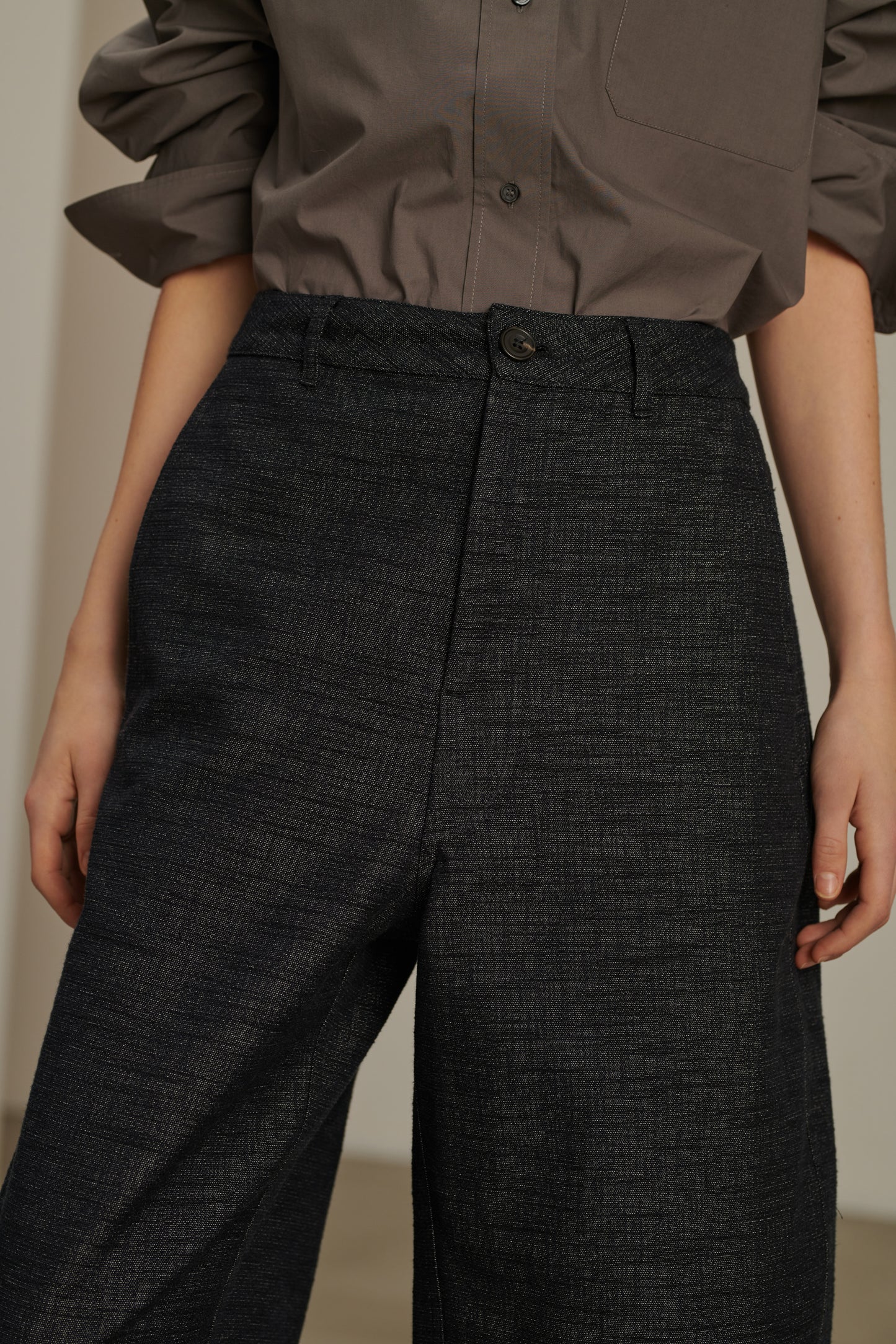 Flame Silk Cotton Trousers mottled midnight blue
